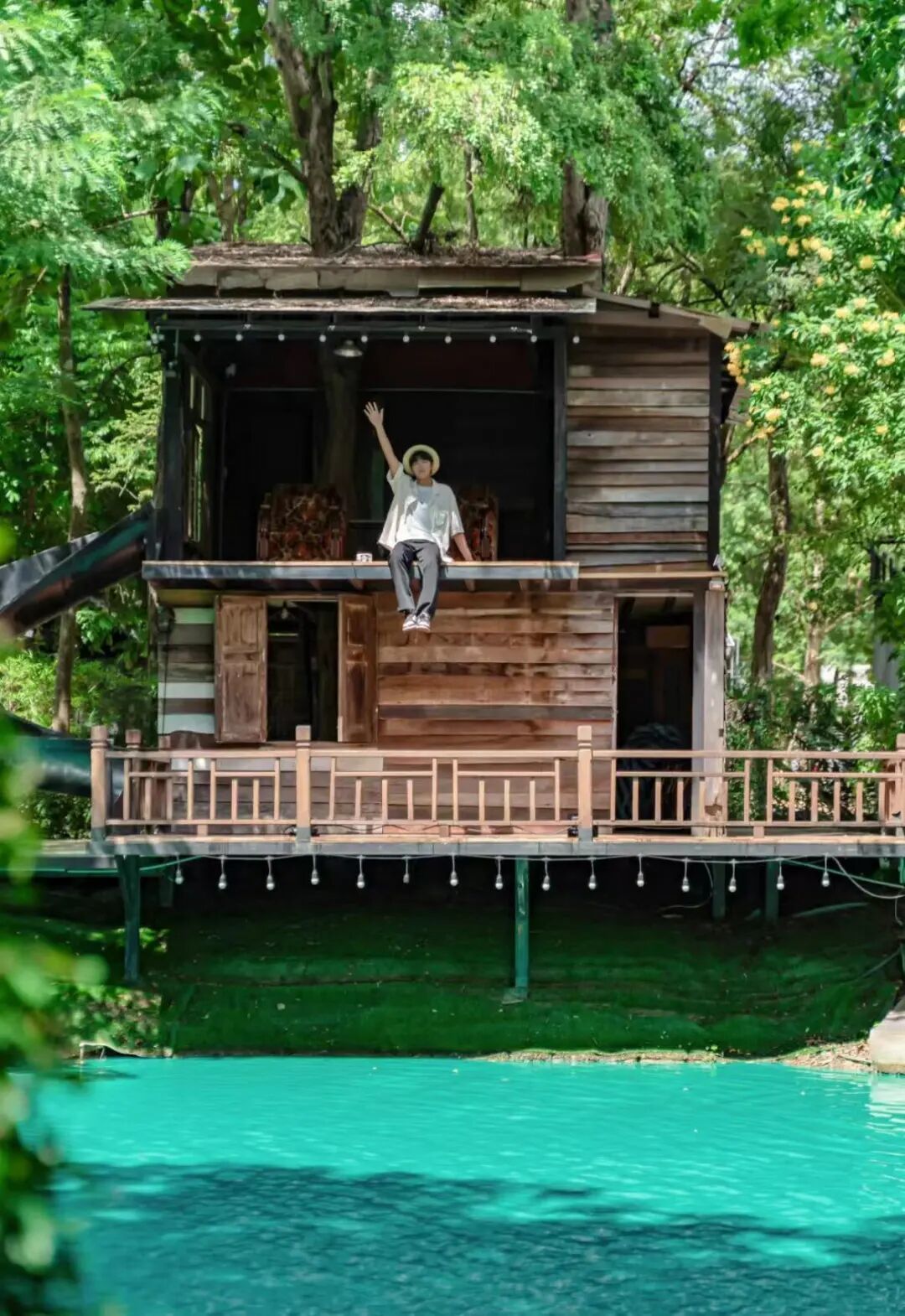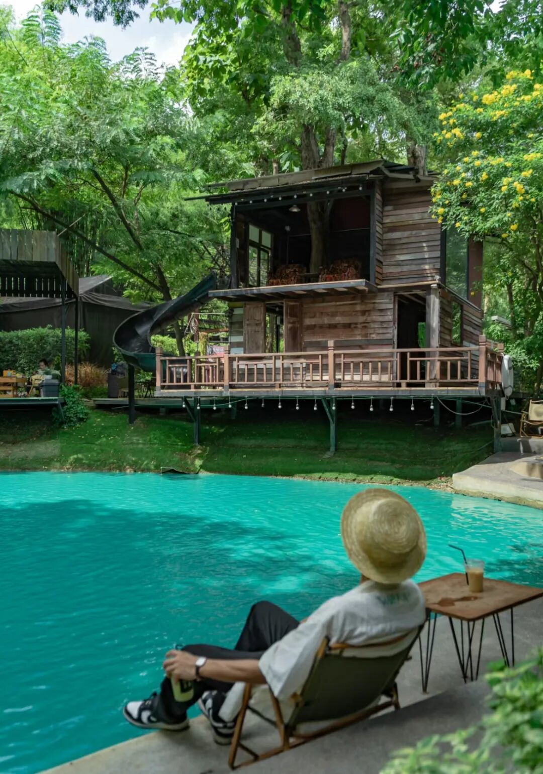 这家超人气咖啡就在清迈大学后门,带有滑梯的湖边木屋配上蓝色泳池,太出片了。微风拂过、树叶摇曳的时光,十分惬意。
