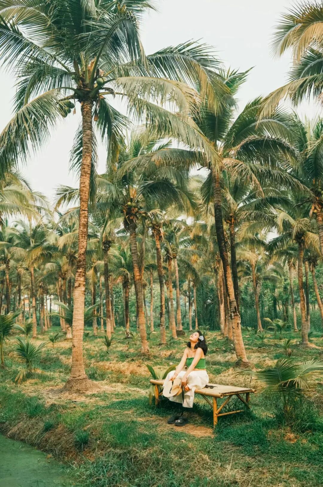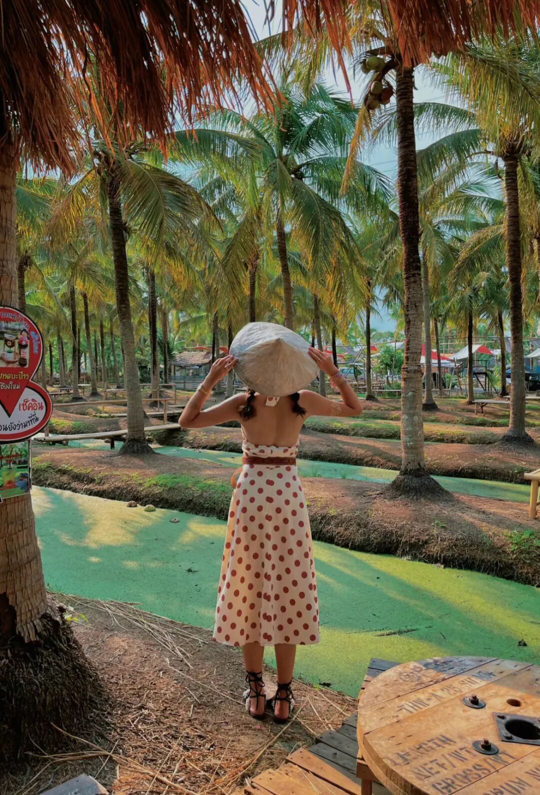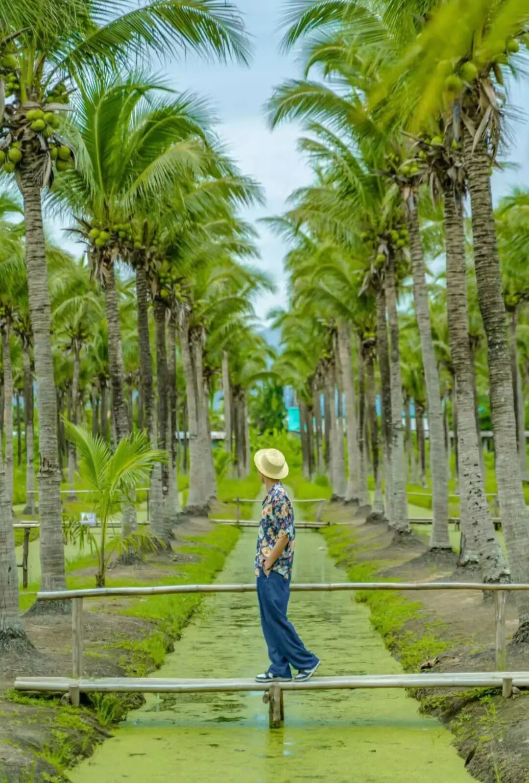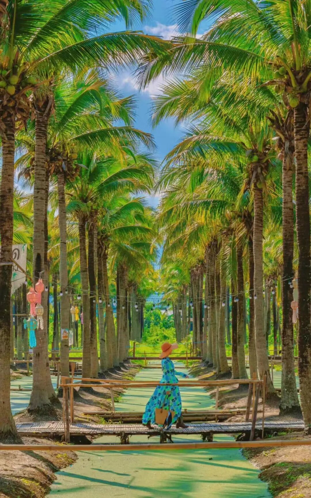 藏在一大片椰林里的集市,抹茶般的绿色河道遍布椰林,站在小竹桥上走走,仿佛来到丛林秘境。