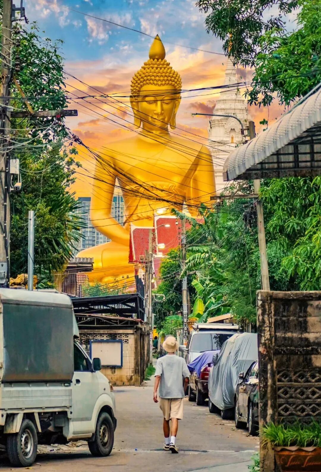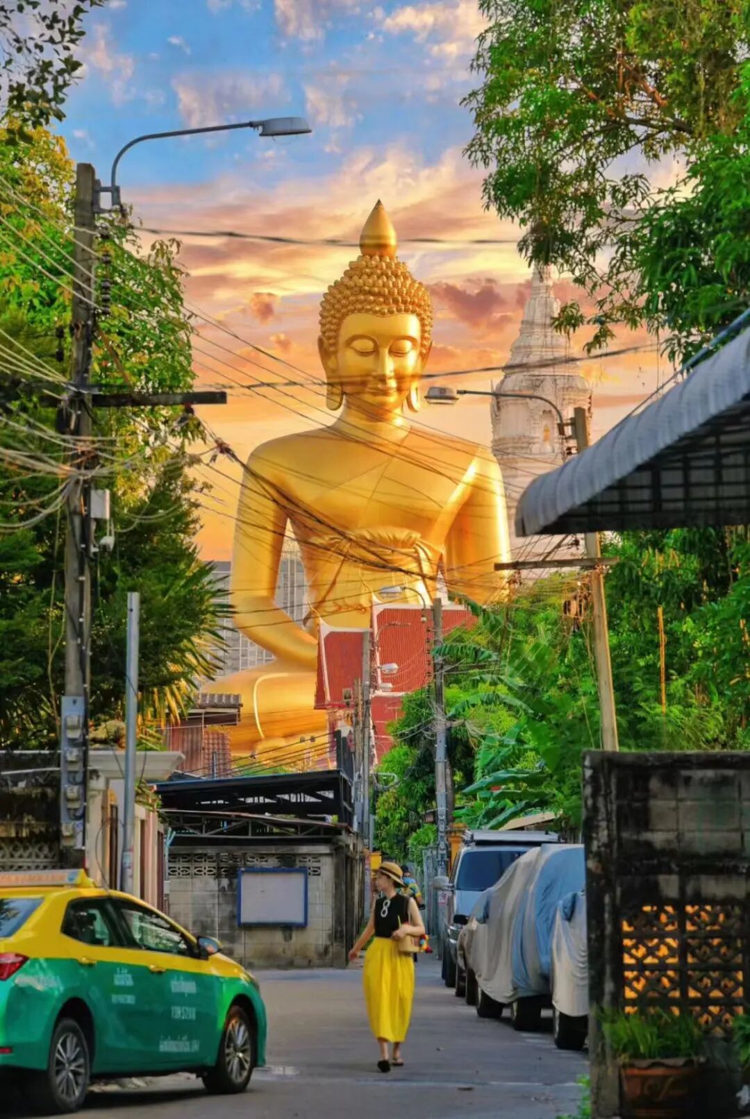 最能体现曼谷佛寺与都市街景交织的地方,水门寺原是皇家寺庙,2020年重建后,那20楼层的金色大佛惊艳了世界。