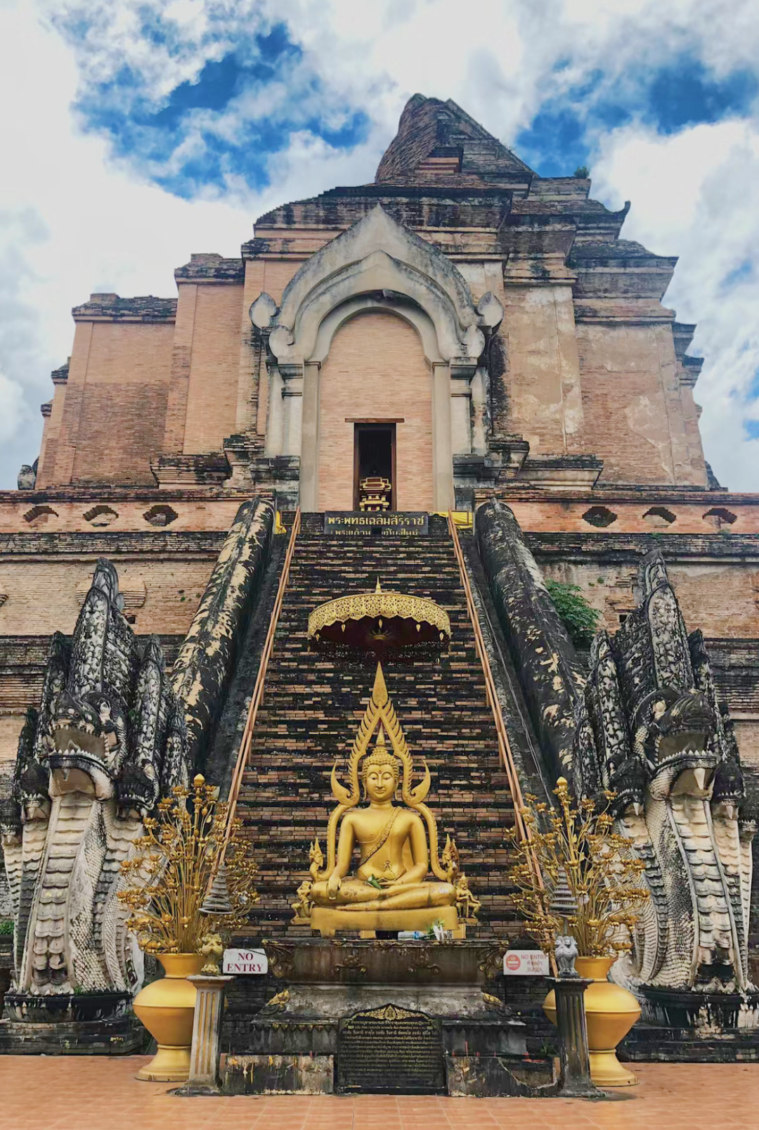还有600多年历史的「契迪龙寺」,修建于15世纪,佛塔斑驳的外墙和塔尖呈现出厚重的岁月痕迹,主佛塔看上去宏伟无比,如果要转佛塔的话,记得顺时针走(50铢门票,05:00-22:00)。