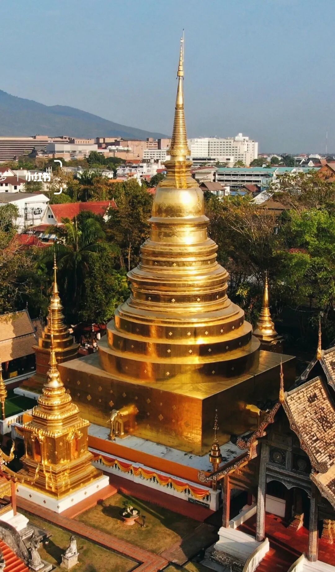 主殿后方的观景天台可以俯瞰整个清迈城,想看全景的,这就是个绝佳拍摄地(30铢门票,可以步行上山,也可以坐缆车,6:00-20:00)。
