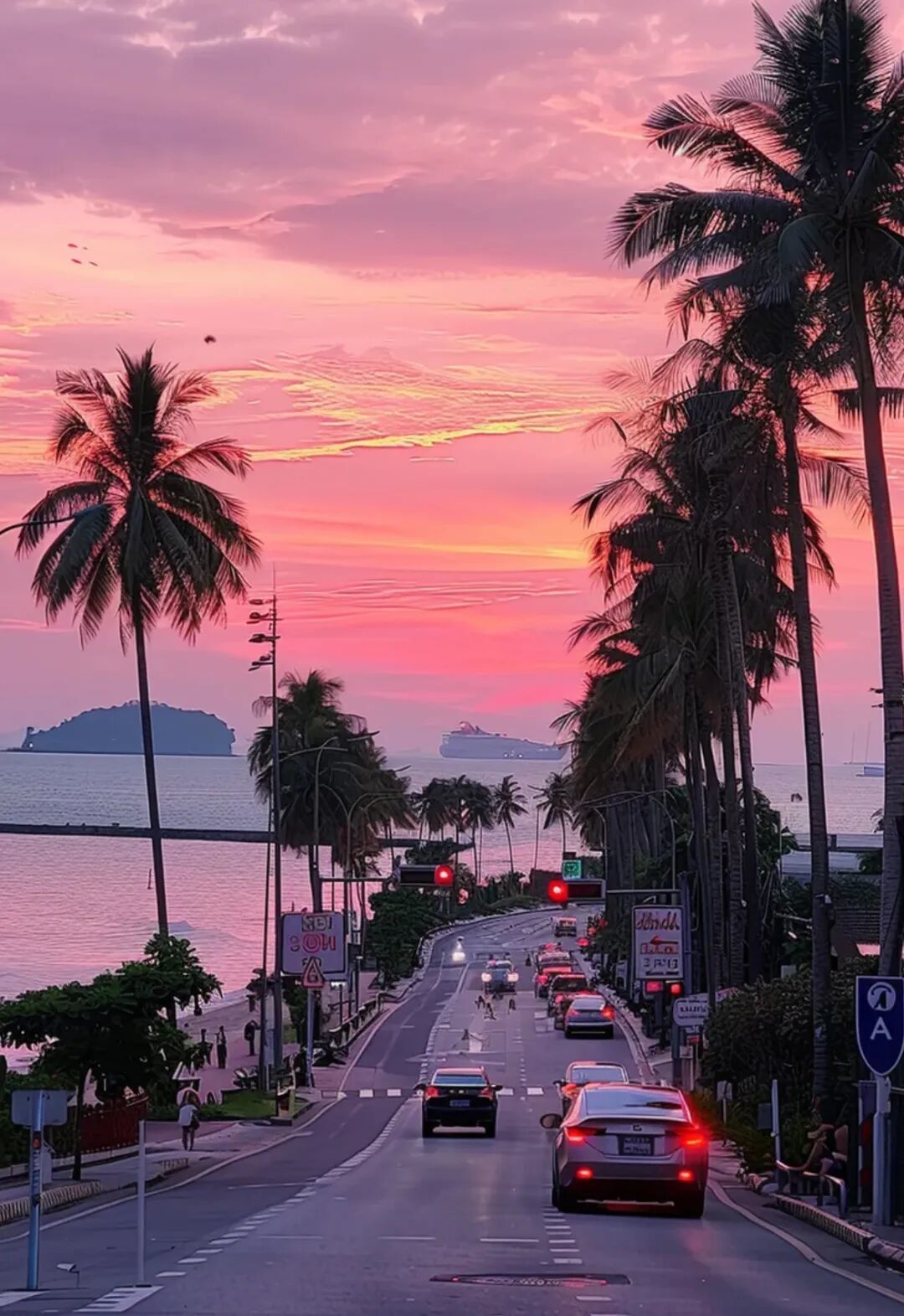 距离曼谷150公里的芭提雅,拥有海滨城市本来的浪漫,与海为邻,可以去追不同的落日,去看果冻色的海,满眼的星辰大海,谁见了都会沉沦吧。