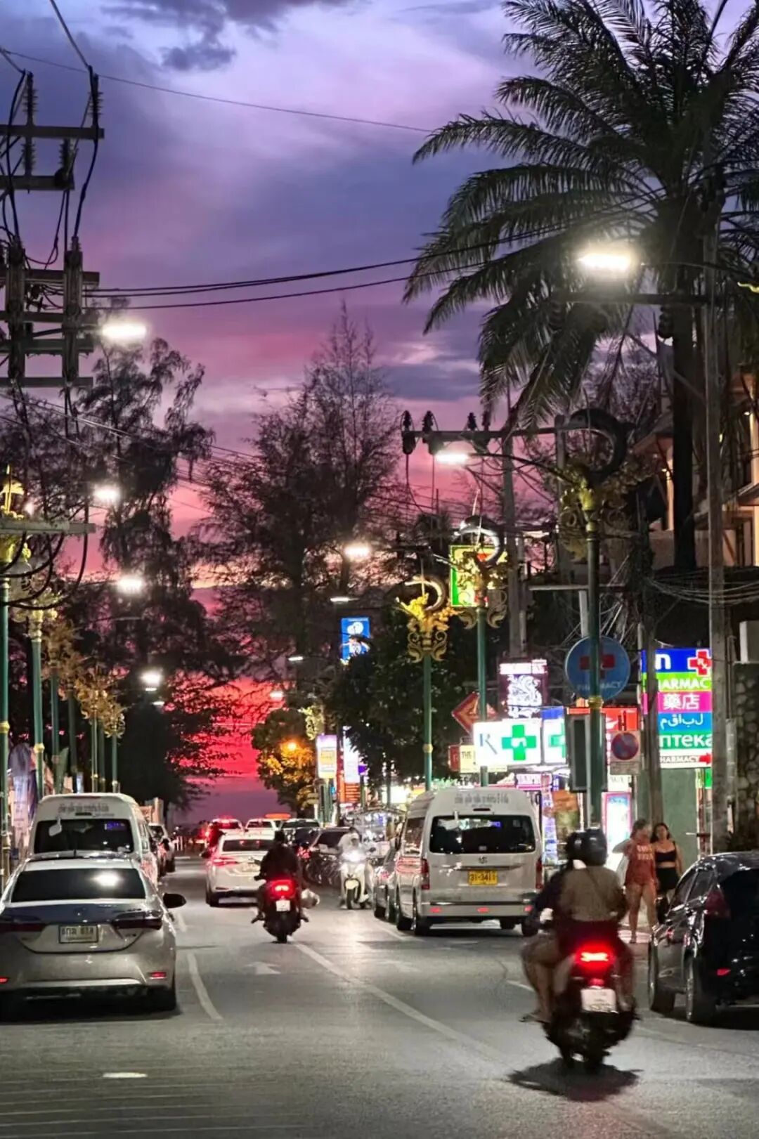 海滩旁有热闹的酒吧街,普吉岛的繁华和热闹在这一刻被淋漓尽致的展现出了。