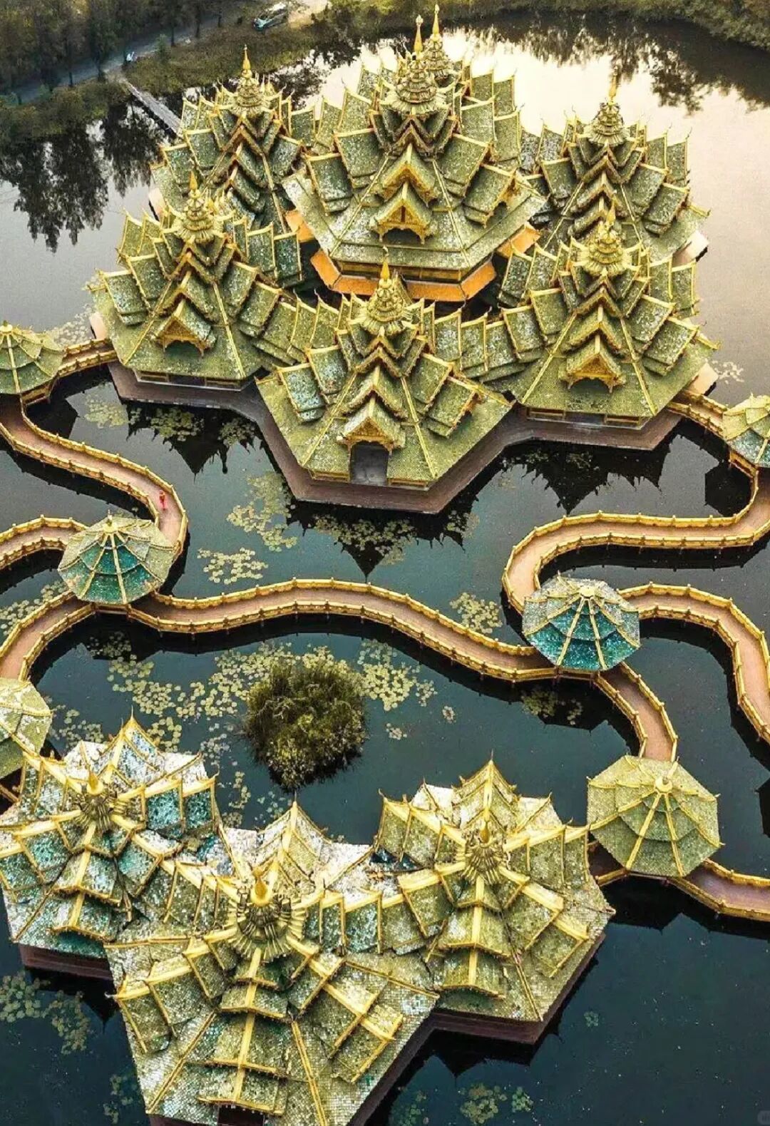 暹罗古城的每个角落都很出片,主要是游人不会像大皇宫那么多。它被称为是“世界最大的私人露天博物馆”,按1:1的比例还原了泰国120多座华美的建筑。