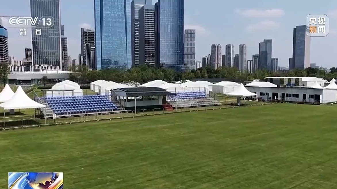 同样位于天府新区的天府公园,也是环绕在楼宇之间的城市绿肺。这里将进行浮士德球和攀岩的比赛。场地依托公园的草地建设,同样使用了临时座椅以及可拆卸的帐篷等形式,不仅避免对原有场地的破坏,也高效利用可循环使用资源,践行“绿色低碳”的理念。