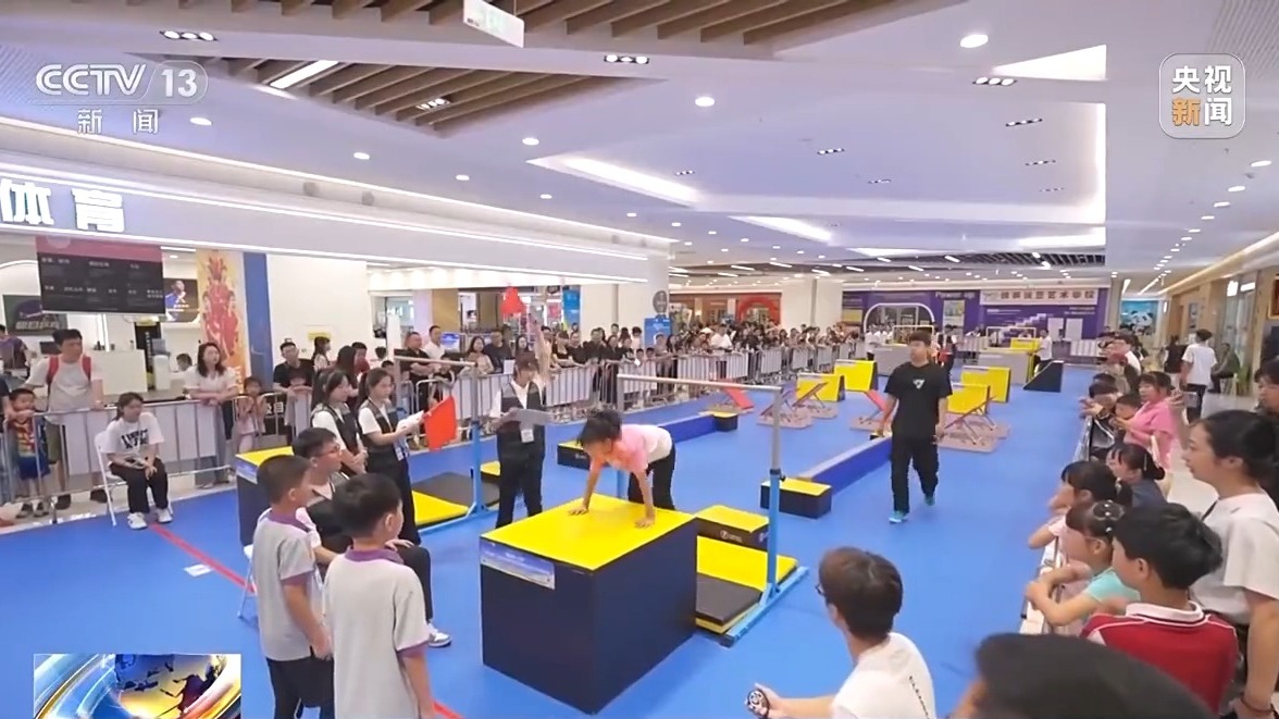 而在成都市的某商圈里,一场别开生面的跑酷比赛也热闹上演。疾跑、空翻、吊挂,孩子们用小小的身躯、连贯的动作,轻盈地翻越各种障碍,精彩的比赛也吸引了不少市民驻足观看。